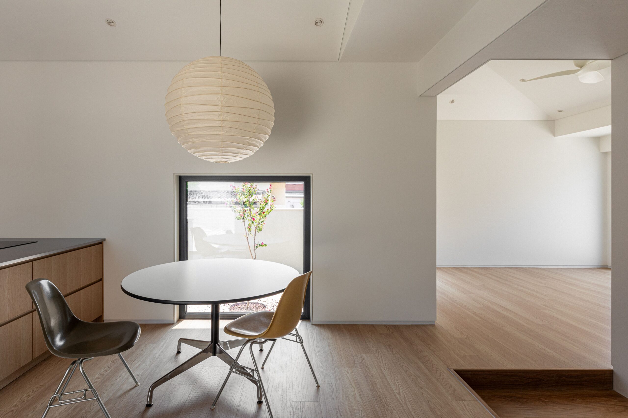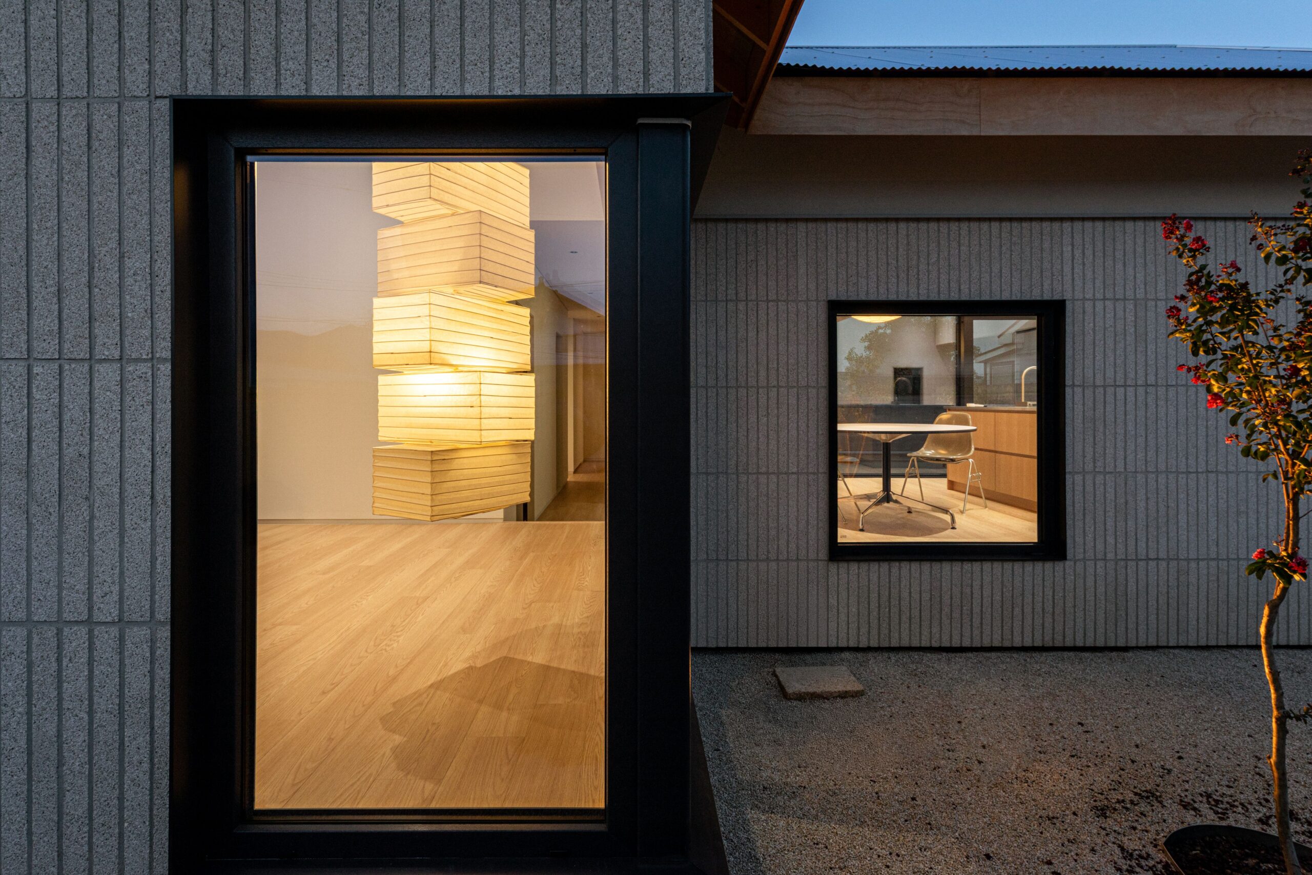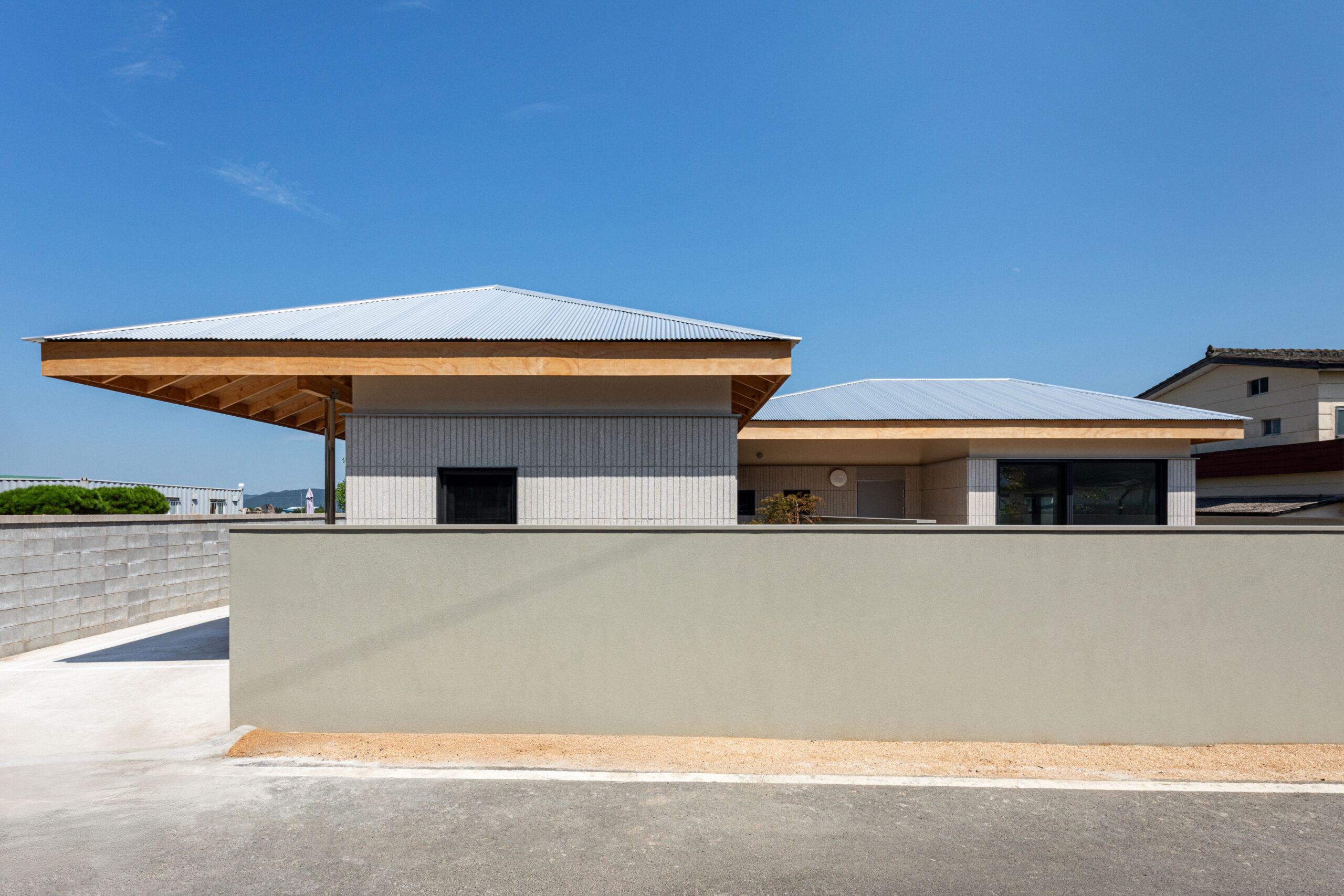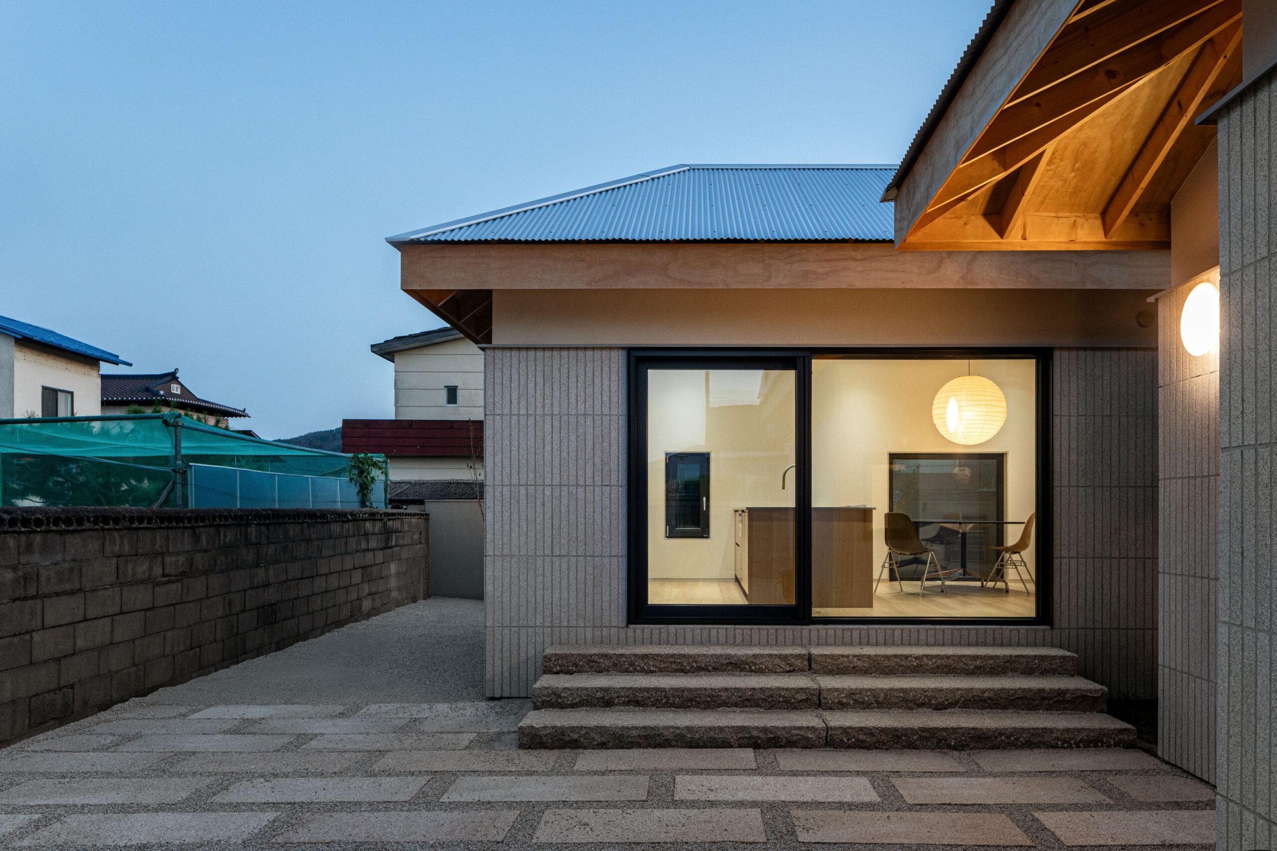 계획하기로 한 면적은 30평, 대지는 120평. 전체의 땅에서 실들을 어떻게 배치하고 외부 공간과 어떻게 관계를 맺을지가 이 프로젝트의 주요점이었다. 우리는 각 실을 외부와 연결된 파장의 중심으로 보고, 이를 흩어 배치하고자 했다. 이렇게 흩어진 중심들은 남북으로 나뉘고, 다시 동서로 갈라지며 대지 위에 골고루 분포되었다. 거실, 다이닝과 주방, 방, 방과 드레스룸 등 네 개의 주요 공간은 외부 마당에 둘러싸이도록 배치되었고, 이 실들은 중심의 복도를 통해 연결된다. 이러한 구성은 마당을 자연스럽게 네 개의 영역으로 분할하며, 채광과 환기를 극대화하고 주차, 진입, 보는마당, 사용하는 마당 등으로 나뉘어 졌다.